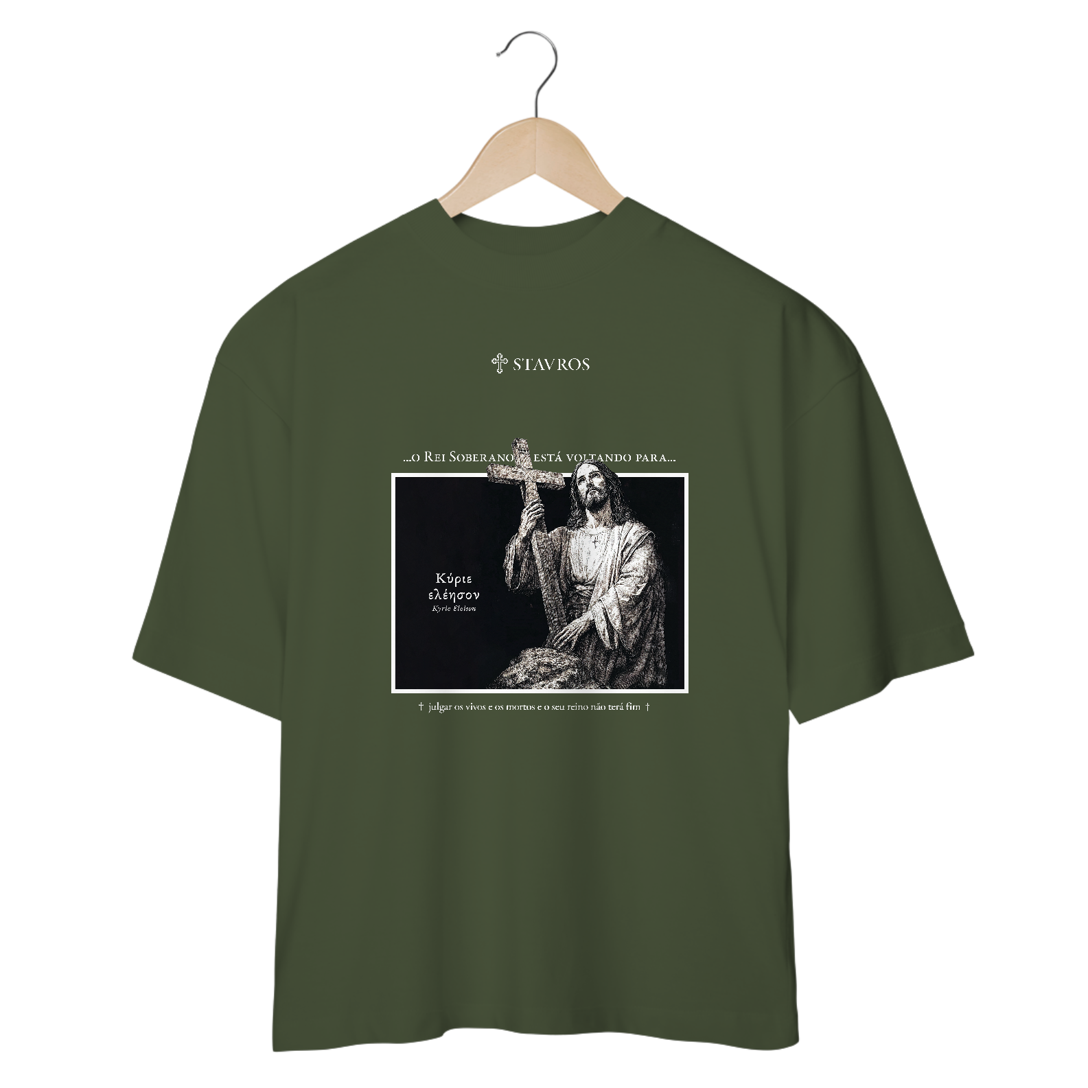 Produzida com um corte oversized e tecido de alta qualidade, ela proporciona conforto e um ajuste moderno, perfeito para diversas ocasiões. Os detalhes do design remetem à riqueza das tradições cristãs e ortodoxas, trazendo à tona um senso de poder, devoção e fé inabalável.
