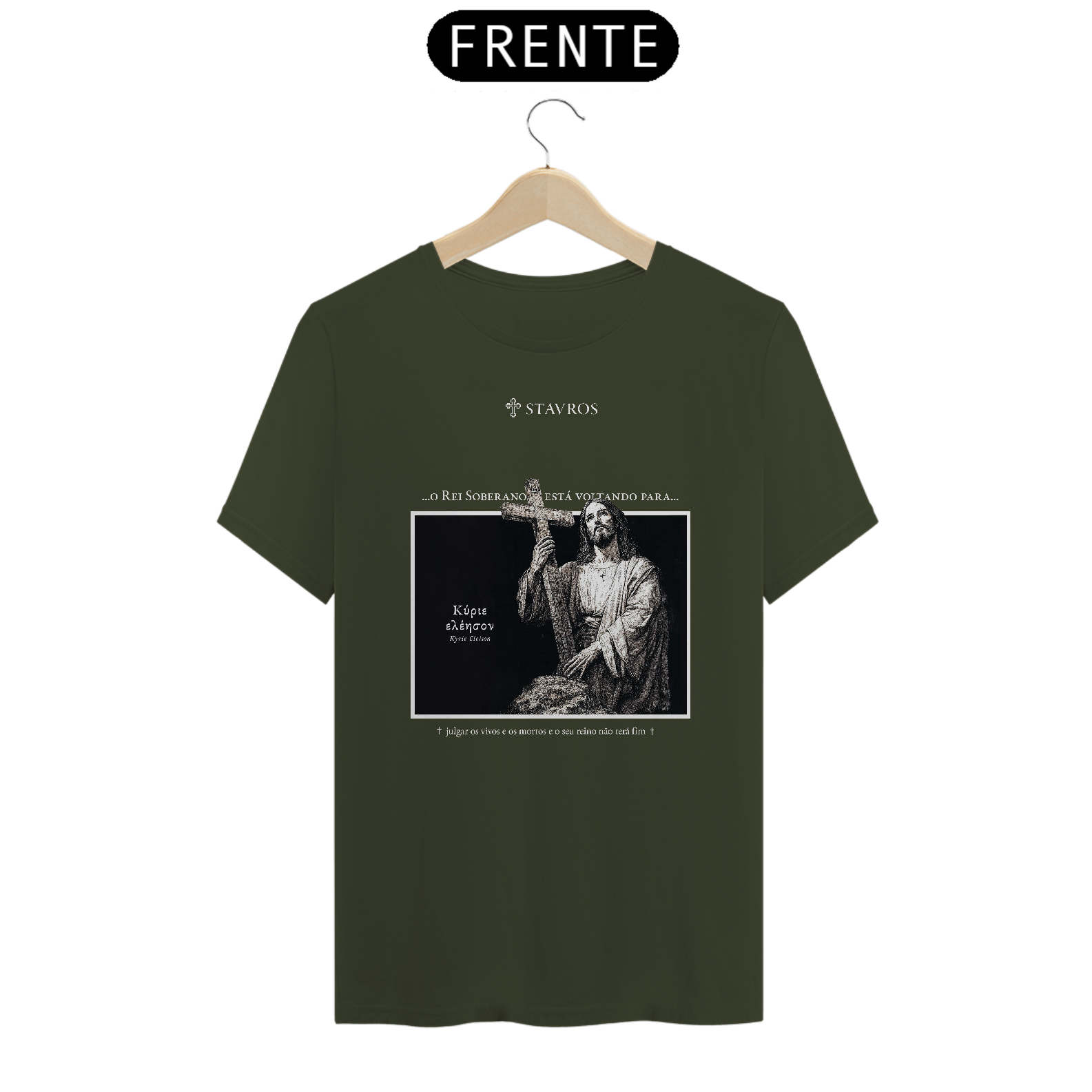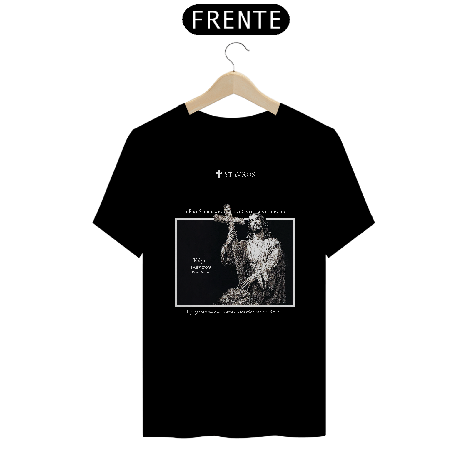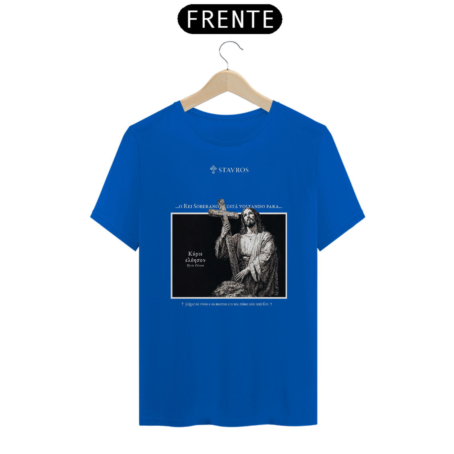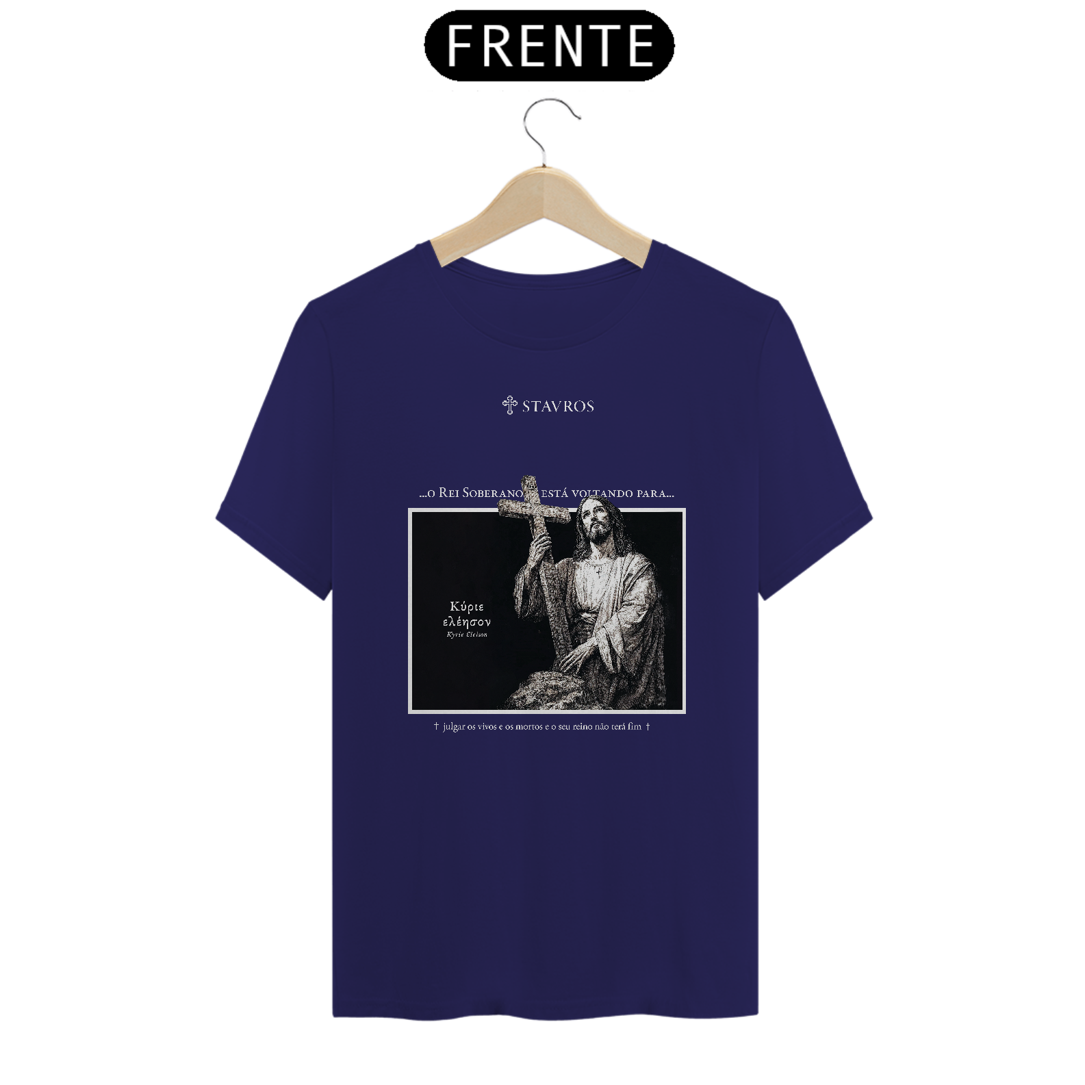 Com o nome "Stavros", que significa cruz, símbolo máximo do sacrifício e da redenção de Jesus, o design ousado desta camiseta traz elementos que remetem a uma armadura, reforçando a mensagem de que "O Rei Soberano está voltando". Disponível nas cores azul, verde, azul escuro e vermelho, ela combina elegância e significado profundo, oferecendo uma peça que se destaca tanto pela estética quanto pela mensagem.