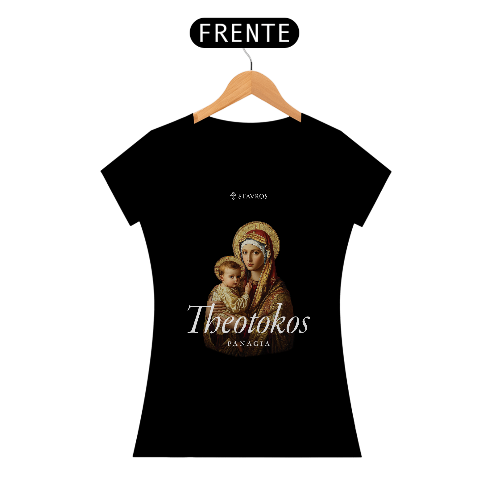 A Camiseta Theotokos Panagía é uma homenagem à Virgem Maria, a Mãe de Deus, reverenciada como Theotokos ("Portadora de Deus") e Panagía ("Toda Santa"). Com um design exclusivo da Stavros, esta peça carrega a força simbólica da fé cristã em cada detalhe.