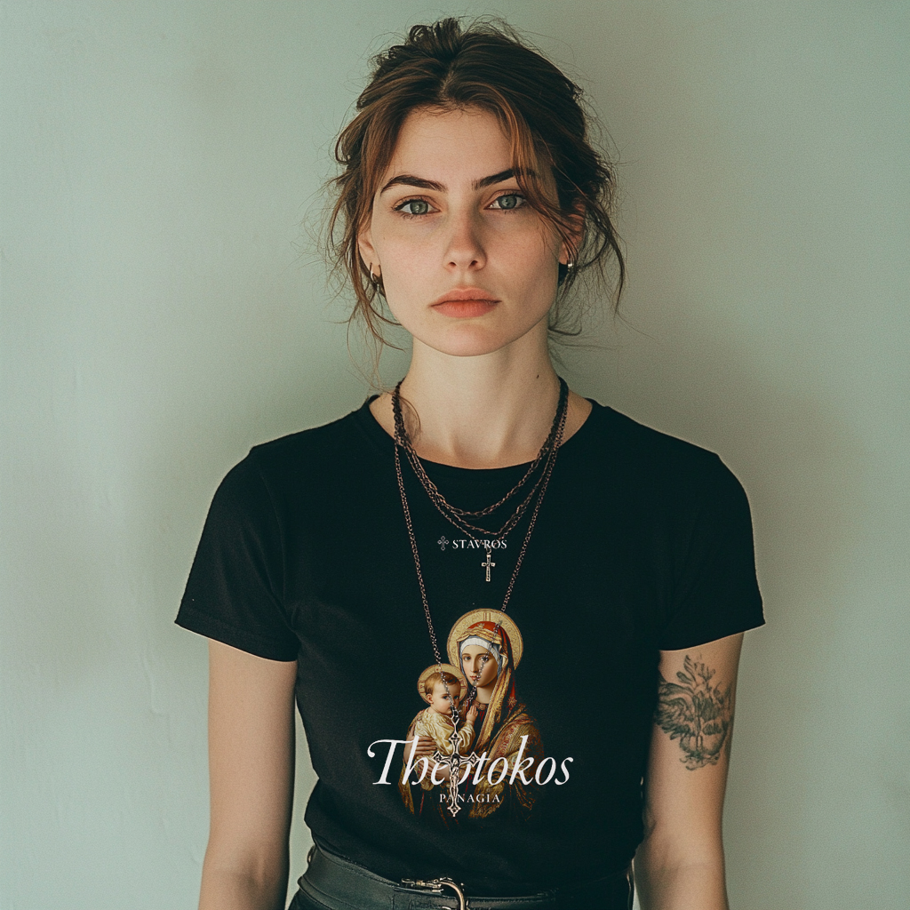 Ao vestir uma camiseta Theotokos Panagía , você não apenas expressa sua fé, mas também assume uma postura firme contra o secularismo. É uma declaração de pertencimento à ordem divina e de amor incondicional à Mãe de Cristo, a Theotokos, que nos guia com sua graça e proteção.